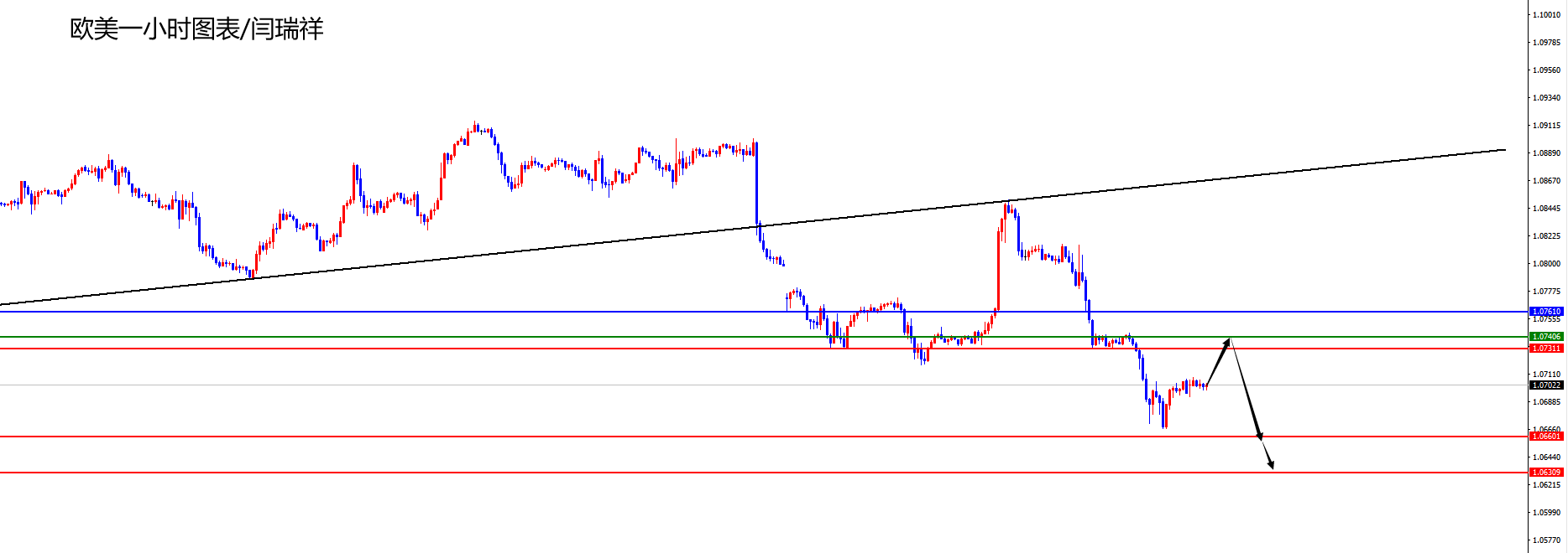 欧美方面,上周五欧美价格总体呈现下跌的状态。当日价格最低下跌至1.0667位置,最高上涨至1.0744位置,收盘于1.0705位置。回顾上周五欧美市场表现,早间开盘后价格短线震荡后再度承压,随后日内价格一直维持弱势状态,美盘附近价格短线止步震荡运行,周线及日线均大阴收尾,表明后续依旧承压,短线上暂时关注1.0730-40区间阻力,价格到位后空,后续关注下方1.0660-30区域。