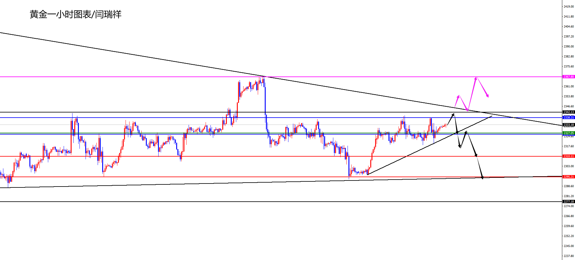 黄金2338-42区间得失成关键,不破继续承压看2327位置及下破表现,如若强势上破则关注测试2368区域