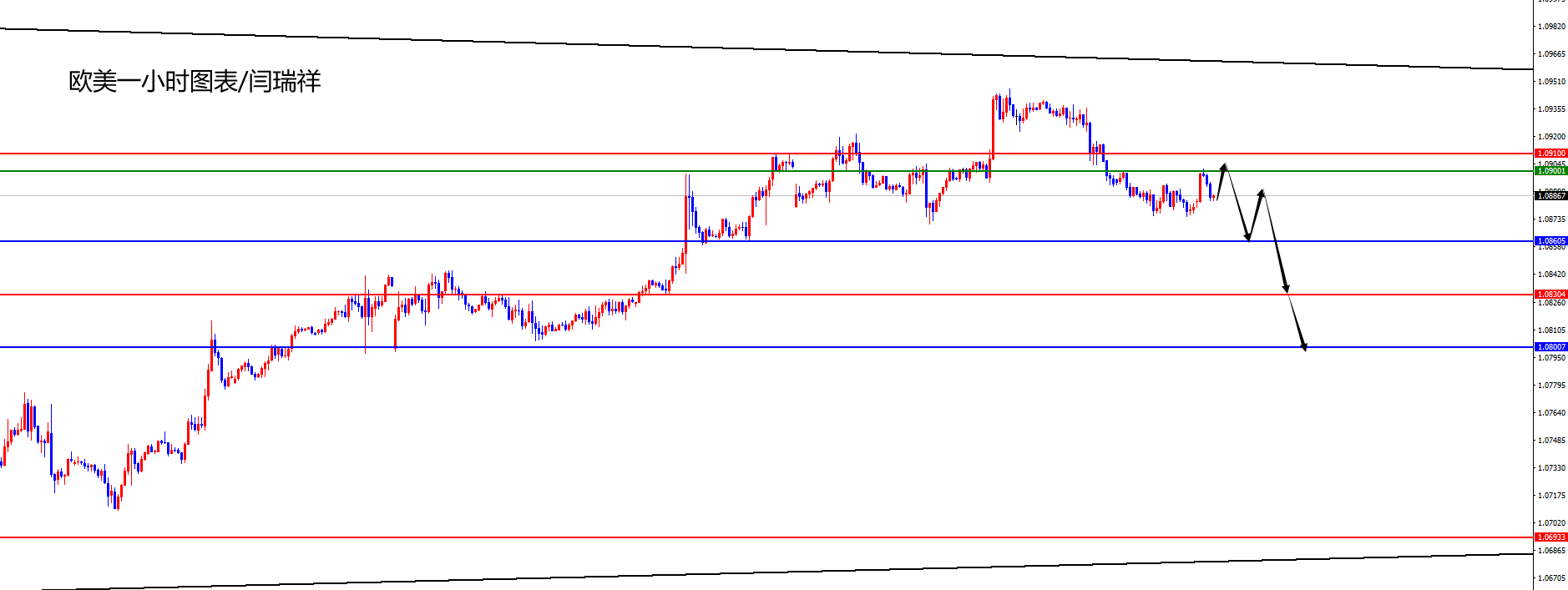 欧美1.0900-10区间空,防守40点,目标1.0860-1.0830-1.0800