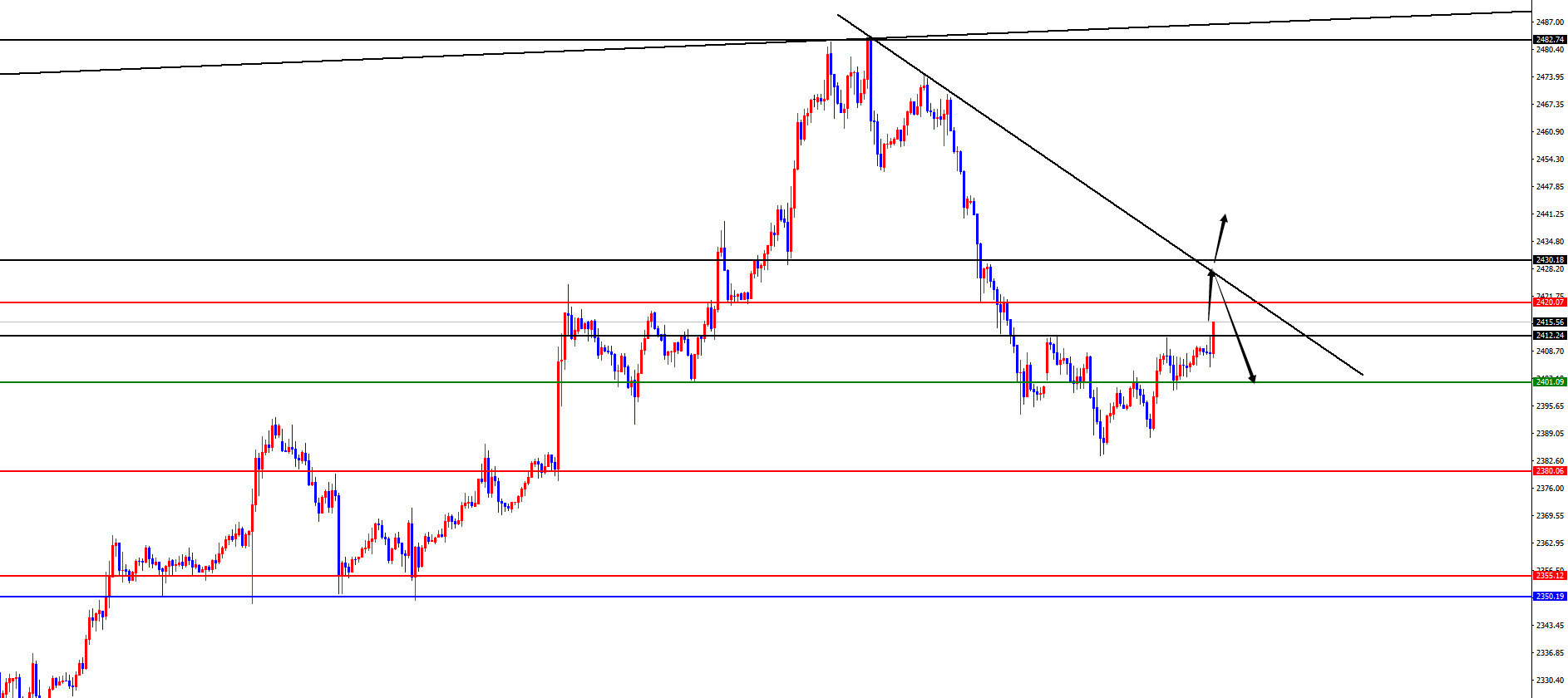 黄金方面,周二黄金价格总体呈现上涨的状态,当日价格最高上涨至2411.9位置,最低下跌至2388.14位置,收盘于2409.41位置。回顾周二黄金市场表现,昨日黄金形成震荡式上涨表现,日内虽然压制在2412位置,但是价格此区域后是美盘开盘前,随后美盘价格没有大幅下跌,则表明黄金还有进一步上涨的迹象,同时价格在日内站上四小时阻力2402区域,日线上最终大阳收尾,针对今日则重点关注2402-03区间支撑看上行,上方关注2420及2430区域,后续价格待测试到2420-30区间则关注是否出现反转信号,一旦出现则关注后续承压,目前整体上属于关注黄金下跌过程中反弹,所以后续重点关注冲高回落表现。