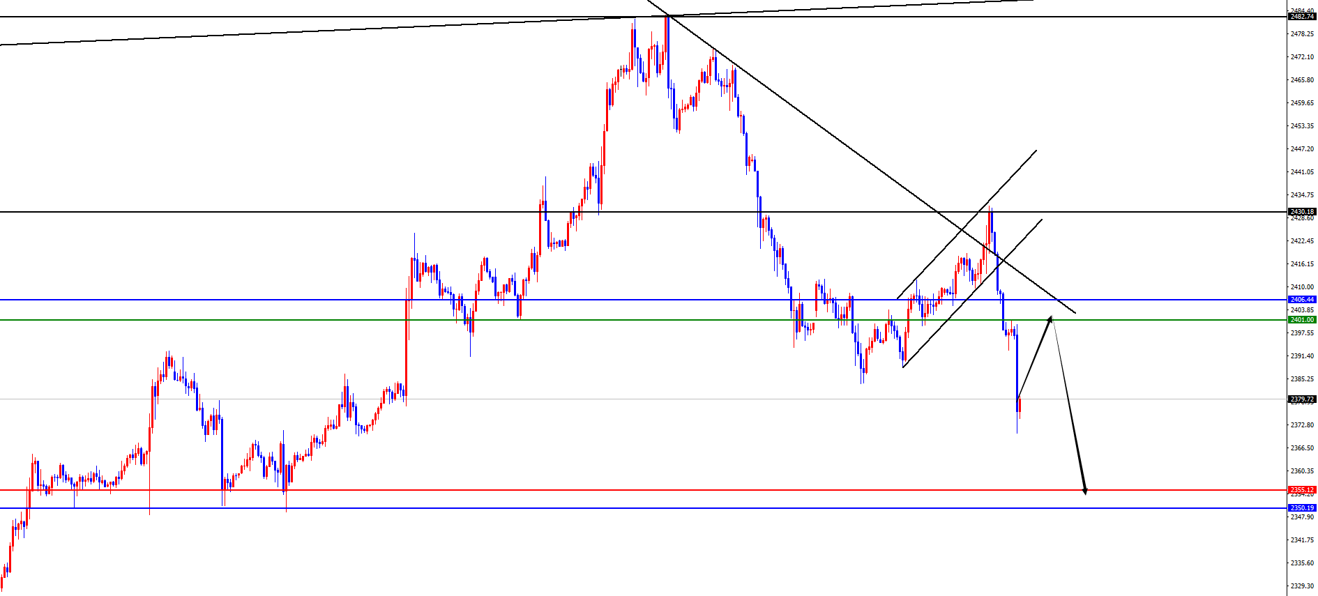 黄金2400-01区间空,防守10美金,目标2370-2355-2350