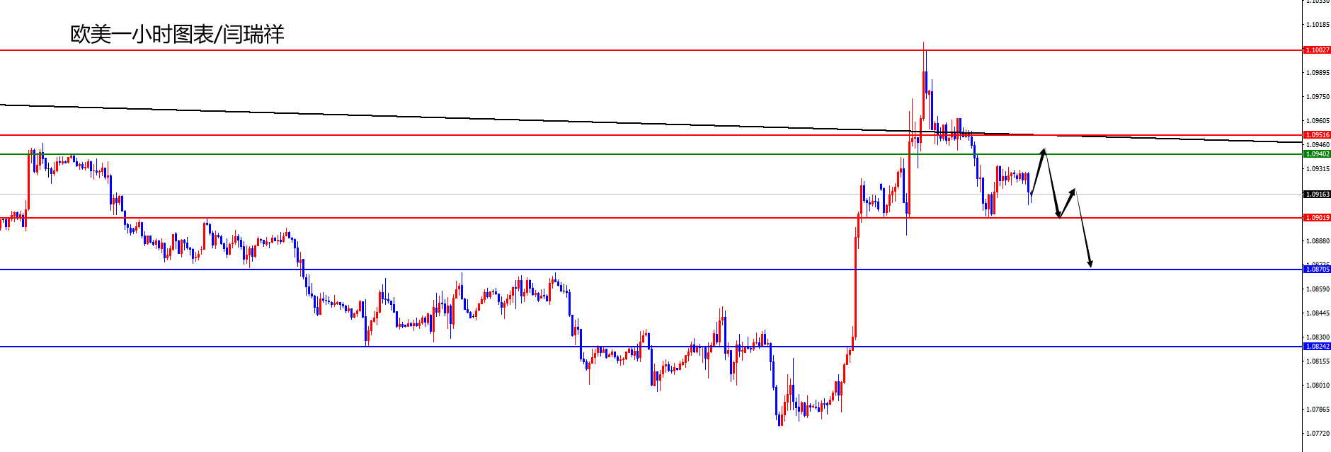 欧美方面,周二欧美价格总体呈现下跌的的状态。当日价格最低下跌至1.0903位置,最高上涨至1.0962位置,收盘于1.0929位置。回顾周二欧美市场表现,早间开盘后价格短线震荡,价格压制于周一凌晨回撤的高点位置,价格迟迟压制不破,后续价格承压下跌,虽然隔夜价格出现修正,但是整体收盘依旧阴线收尾,目前价格压制于四小时阻力1.0940-50区间,目前看四小时还有进一步修正的空间,所以暂时先短线跟随行情下跌,下方重点关注1.0900-1.0870区域。