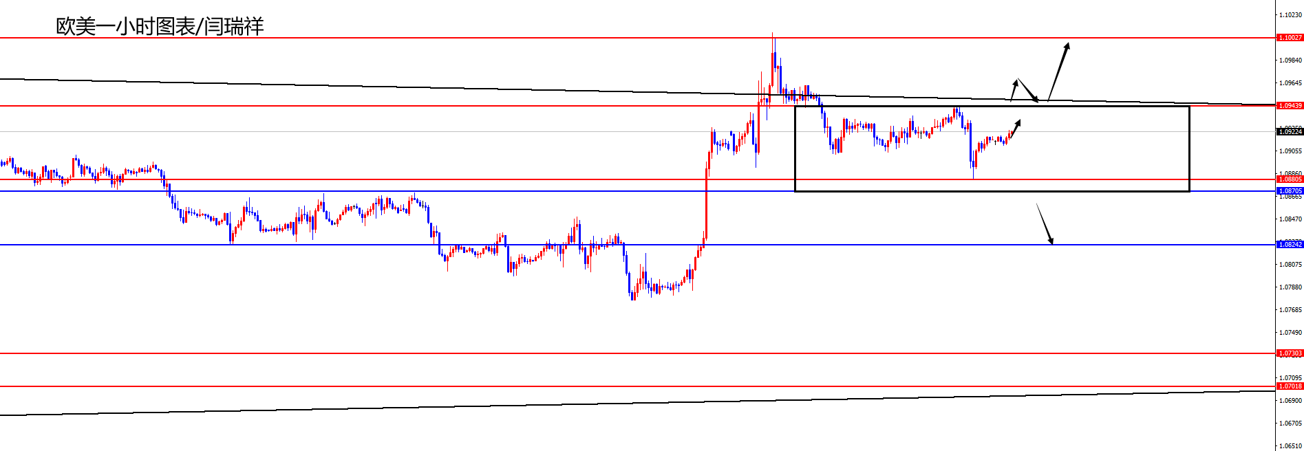 欧美方面,周四欧美价格总体呈现震荡的的状态。当日价格最低下跌至1.0881位置,最高上涨至1.0944位置,收盘于1.0916位置。回顾周四欧美市场表现,早间开盘后价格短线向上修正后如期承压,价格后续测试日线支撑上方止步,最终当天收盘偏十字收尾。对于目前看暂时关注日线支撑得失,不破后续有望继续偏多,只有下破后才有望持续承压。由于目前几日持续震荡,所以暂时多看少动,待后续明确后再布局。