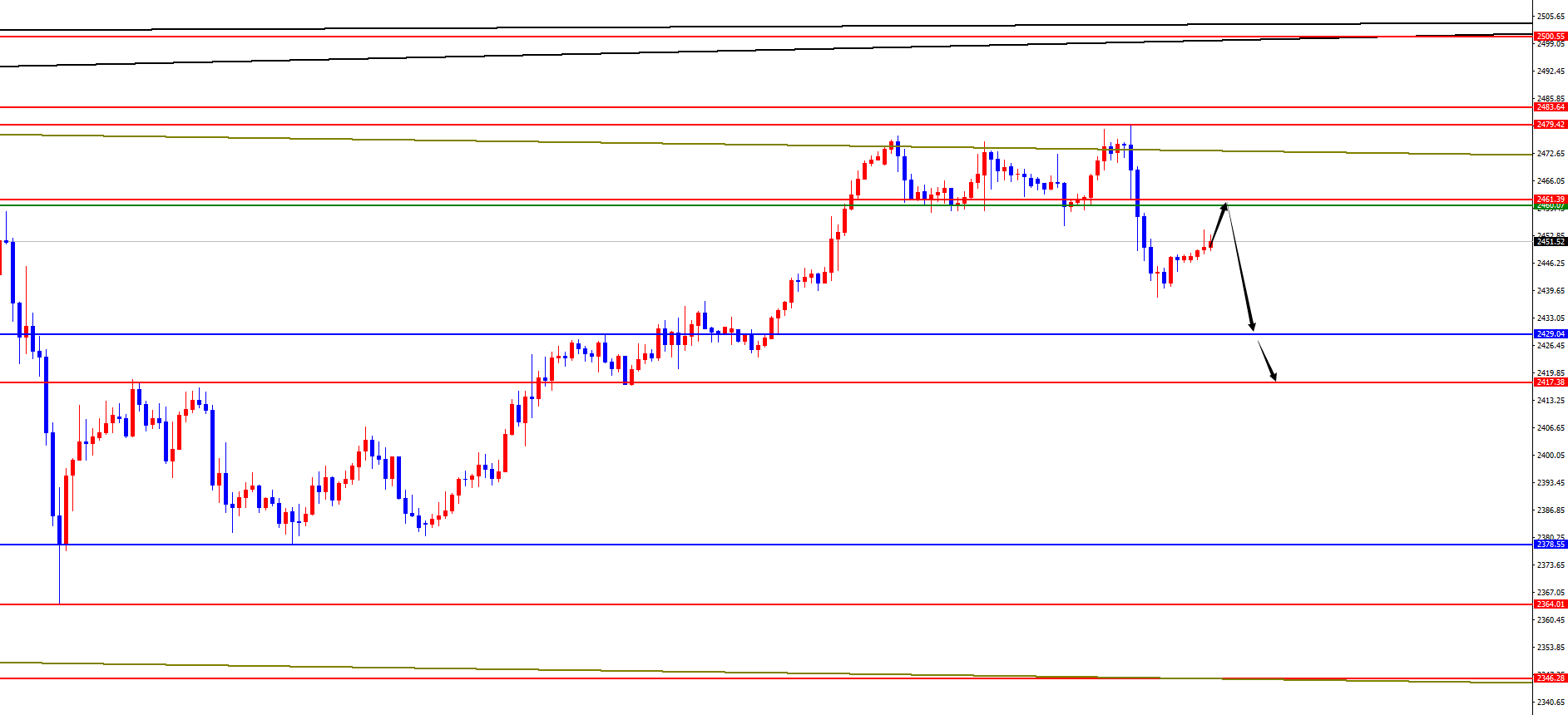 黄金2460-2461区间空,防守10美金,目标2429(下破后关注2417-2390-2380-2364)