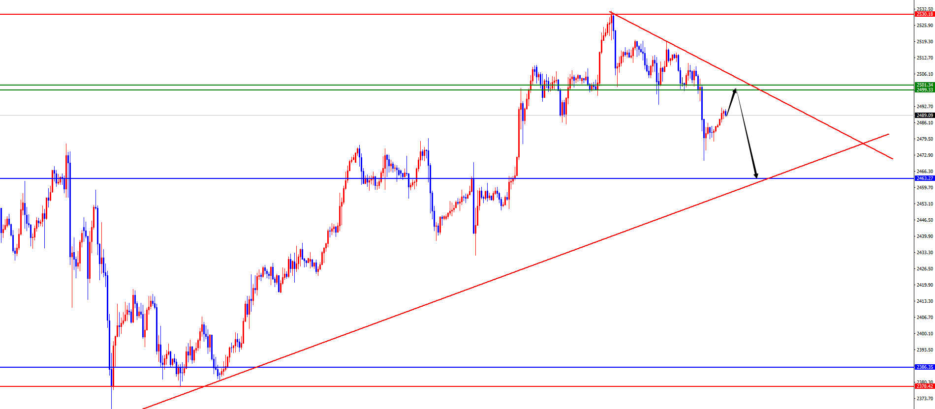黄金2499-2500区间空,防守10美金,目标2485-2363