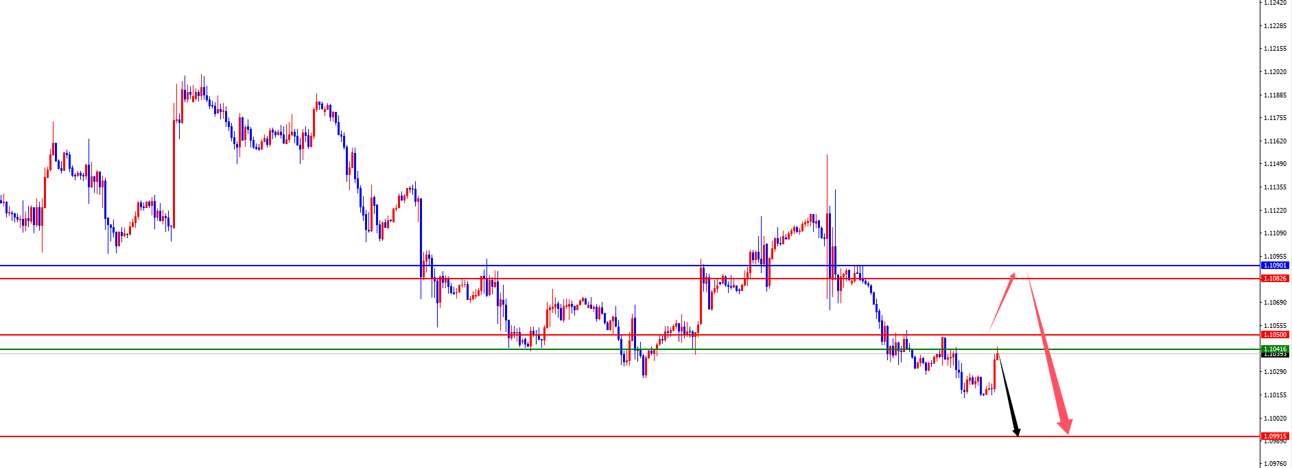 欧美1.1080-90区间空,防守40点,目标1.1040-1.0990