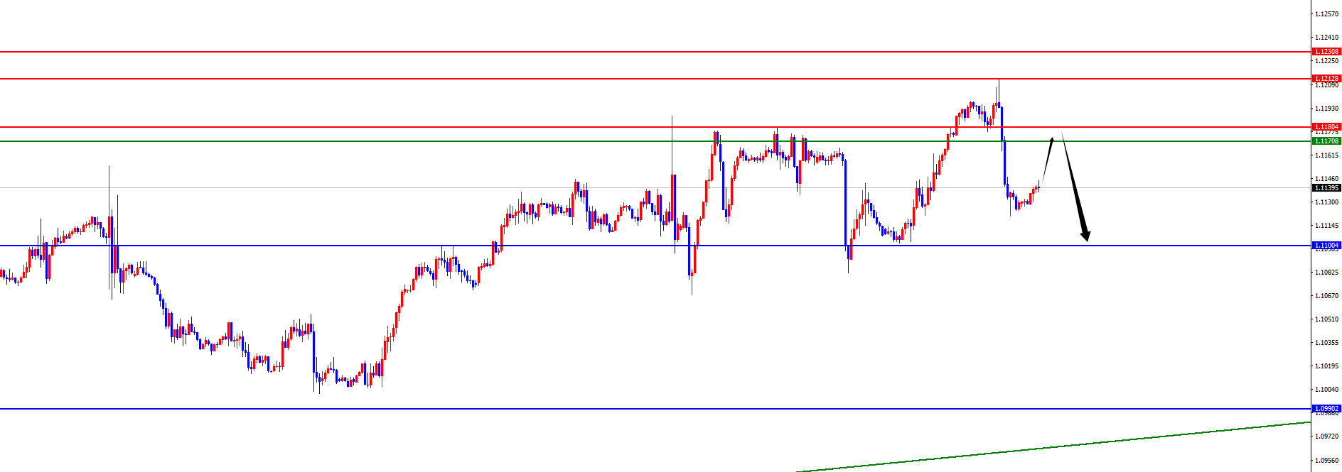 欧美方面,周三欧美价格总体呈现下跌的的状态。当日价格最低下跌至1.1121位置,最高上涨至1.1213位置,收盘于1.1132位置。回顾周三欧美市场表现,早间开盘后价格短线先进行上涨,随后欧盘先修正于早盘低点获得支撑再度发力创出日内高点位置,但是对于美盘后价格承压快速下跌,最终跌破四小时支撑位置,同时日线大阴收尾,目前看欧美上涨力度还是偏弱,整体暂时定义为高位震荡,今日短线上暂时关注1.1170-80区间阻力看承压,下方关注1.1100区域,后续重点关注1.1100区域得失,一旦下破后需还有进一步下跌空间。