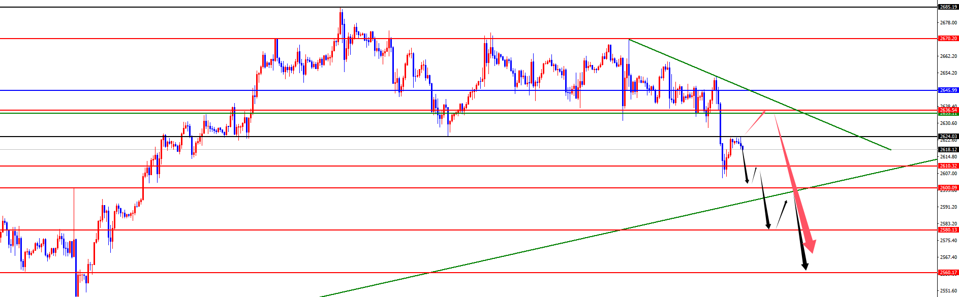黄金2635-36区间空,防守10美金,目标2600-2580-2560