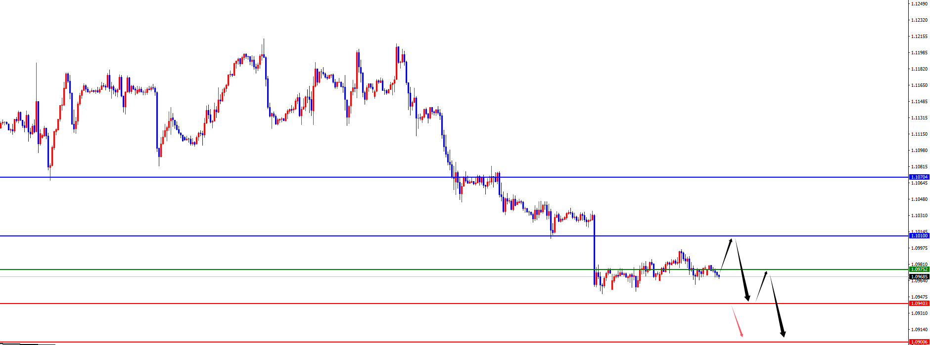 欧美1.1100-10区间空,防守40点,目标1.0940-1.0900