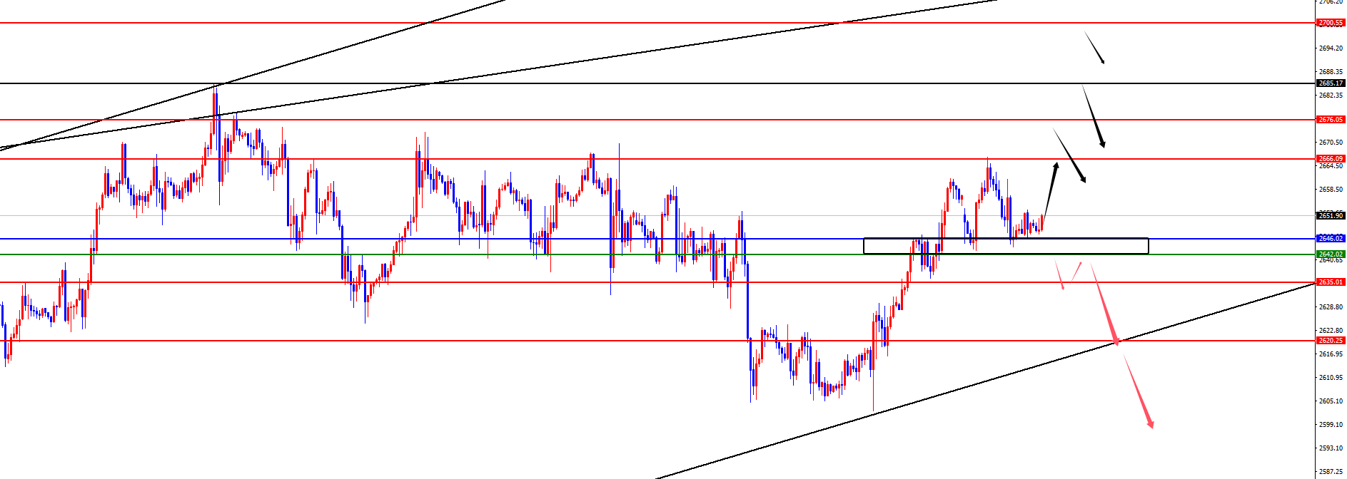 黄金下破2647-43区间回踩后空,防守10美金,目标2635-2620(不破之前暂时先关注高位持续震荡)