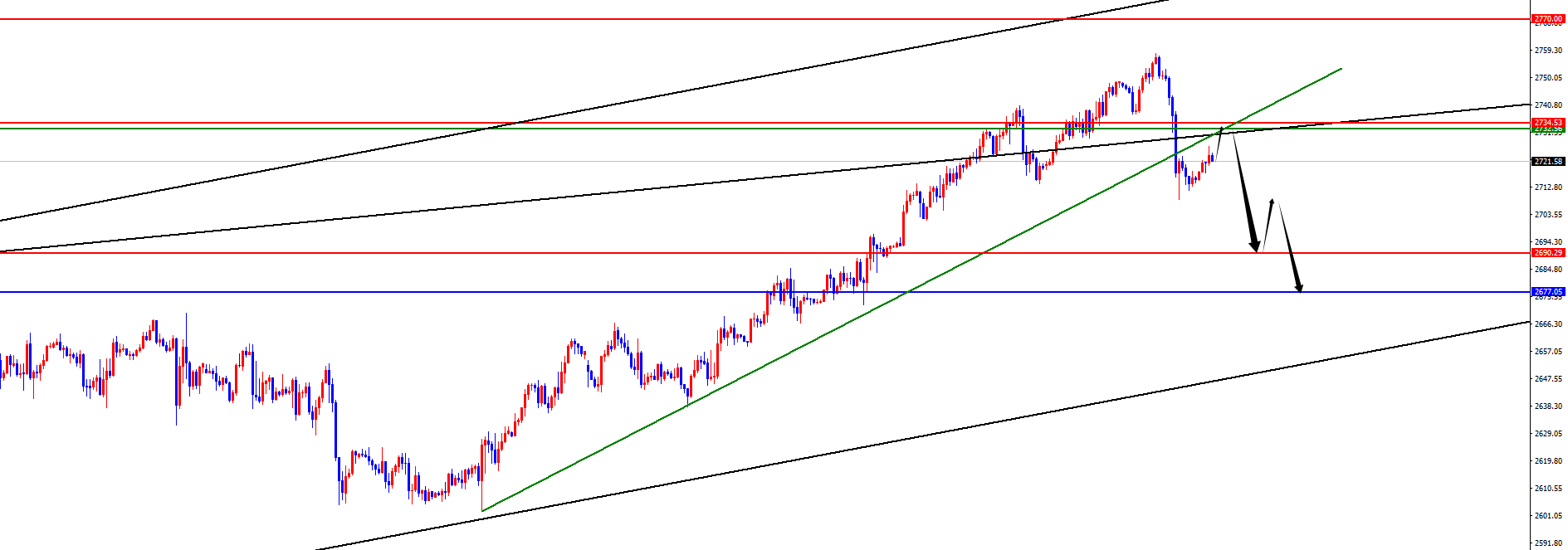 黄金2733-34区间空,防守10美金,目标2700-2690-2677