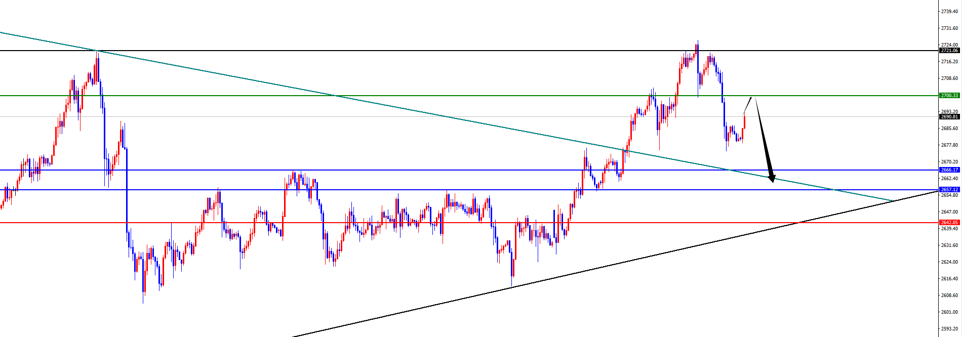 黄金2700-2701区间空,防守10美金,目标2675-2666-2656-2642