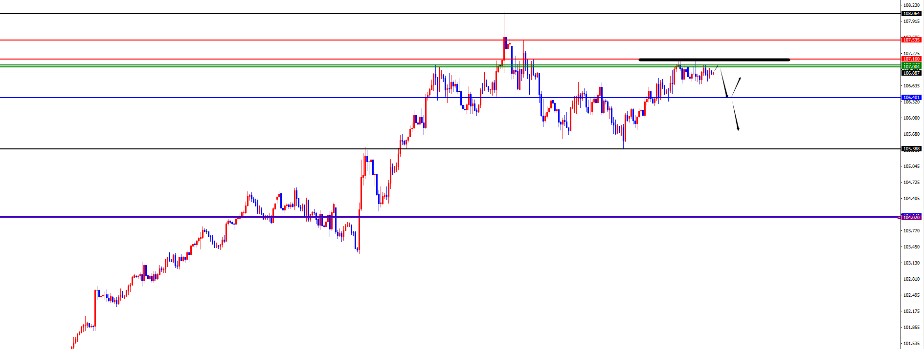 美元指数方面,周二美元指数价格总体呈现震荡的状态。当日价格最高上涨至107.06位置,最低于106.668位置,收盘于106.921位置。回顾周二美指价格表现,早间开盘后价格先延续性下跌,随后进行再度上涨,从上涨的高点位置看并没有突破前一日高点位置,美盘期间持续震荡,目前看美指偏向于高位震荡,从周线级别看暂时需要关注104.50区域支撑,日线级别看暂时关注106.40区域,日线分水岭决定波段走势的关键,同时日线上目前偏向于108.10-105.40大区间震荡,短期四小时上价格也有进一步调整的表现,所以暂时关注107.00-107.10区间看承压,下方关注106.40区域支撑,后续待价格到位后再关注能否进一步下破。