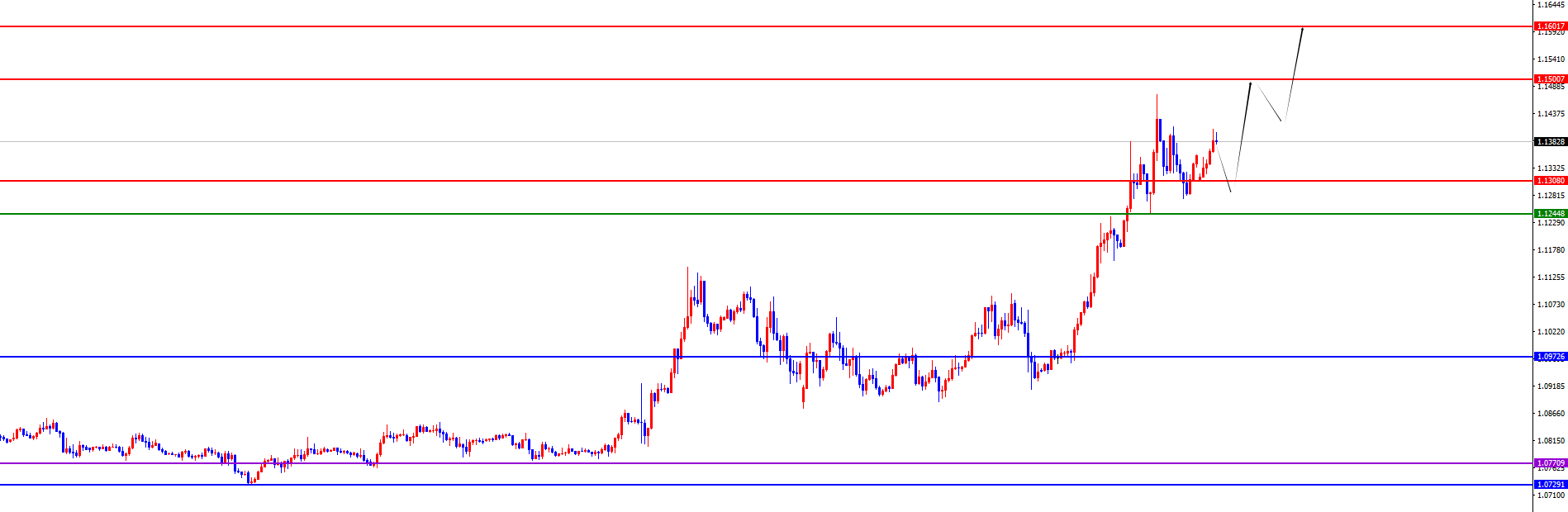 欧美1.1300-1.1310区间多,防守40点,目标1.1500-1.1600