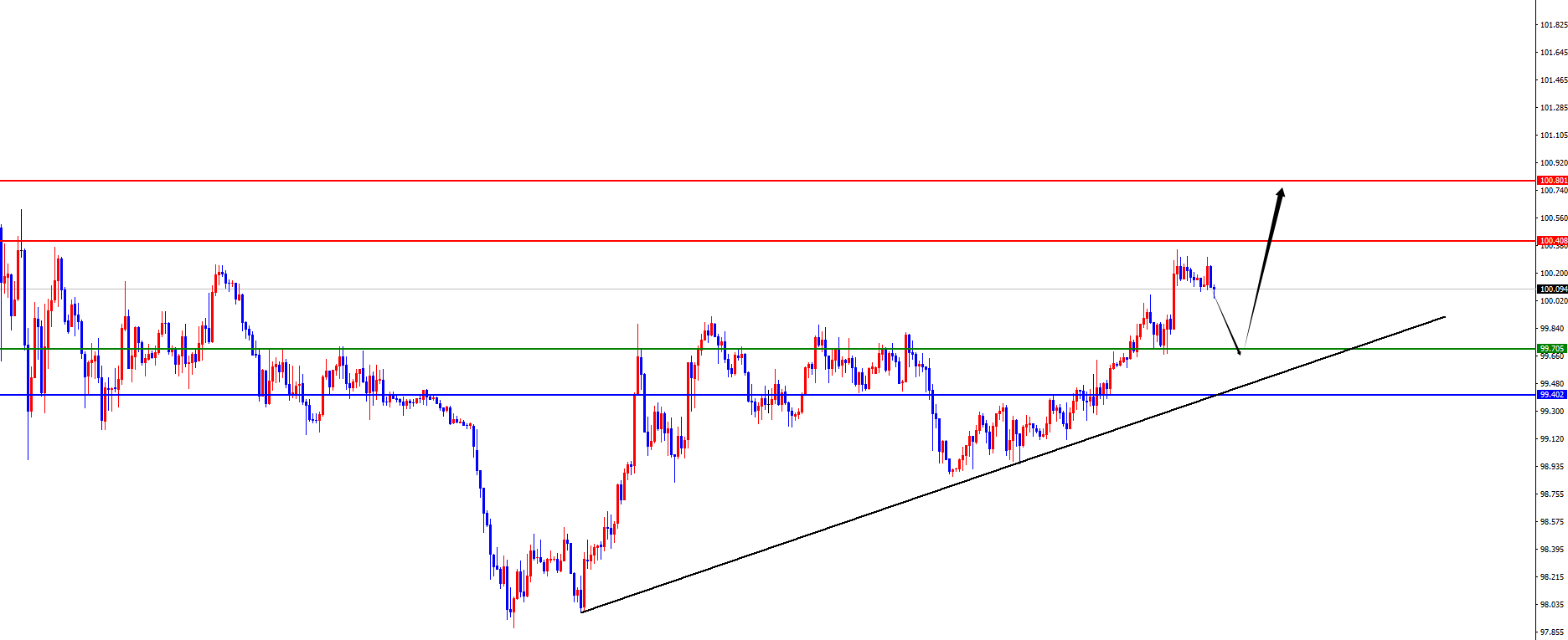 美指99.70-80区间多,防守5美金,目标100.40-100.80