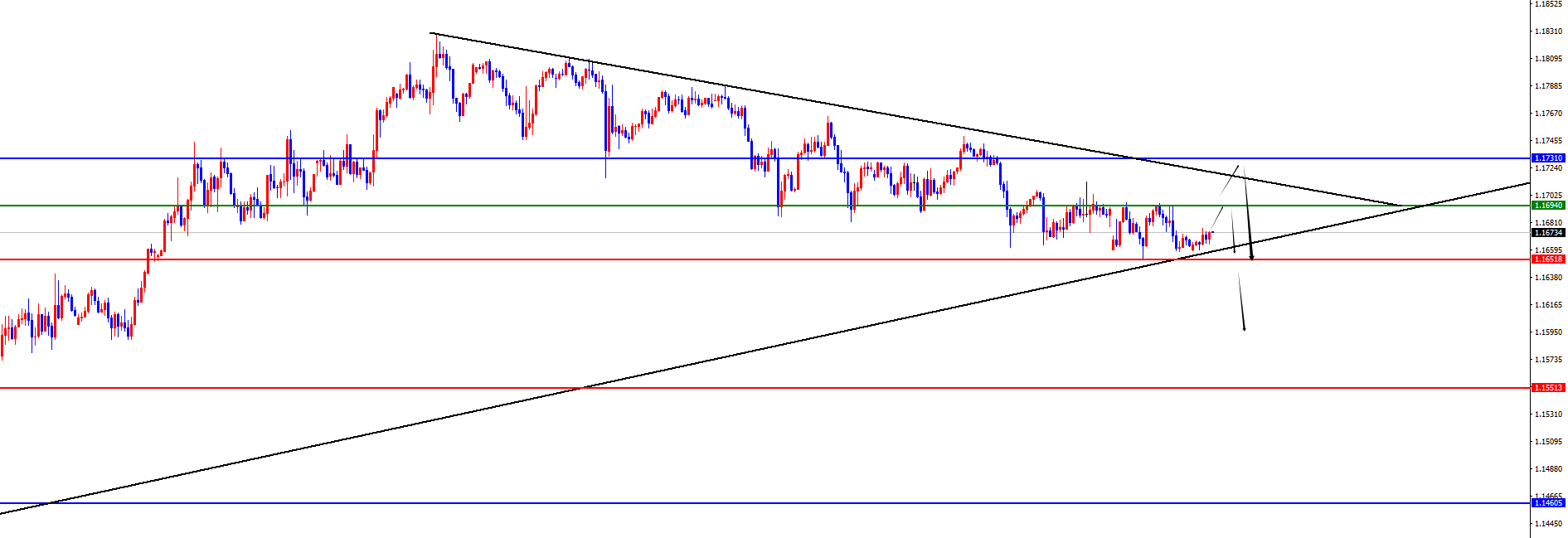 从多周期分析,从月线级别来看,欧美受撑于1.0950位置,所以长线多头对待,月线大阳收尾,则长线上依旧偏多。从周线级别看价格受撑于1.1460区域的支撑,从中线的角度持续看多,价格下跌暂时作为中线上涨中的修正对待。从日线级别,伴随着时间的推移暂时需要重点关注1.1730位置,价格正如笔者所言进一步下破,后续此位置之下波段空对待。从四小时级别看暂时需要关注1.1690区域阻力,价格在此位置之下短期偏空对待,但是目前四小时上我们谨防价格再度小幅调整。同时按照一小时级别看,目前价格短线震荡下跌,短线市场有调整迹象,所以暂时等待价格向上反弹修正后再看进一步承压,位置上则关注四小时阻力和日线阻力承压。