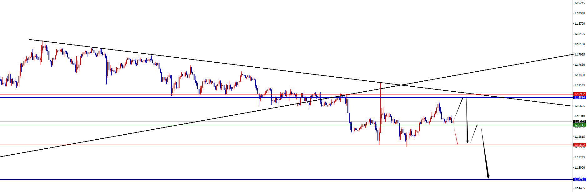 欧美1.1680-90区间空,防守50点,目标1.1570-1.1540
