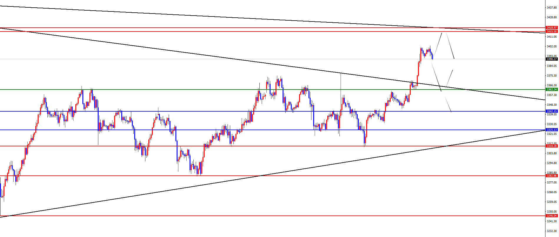 黄金3315-18区间空,防守10美金,目标3390-3370