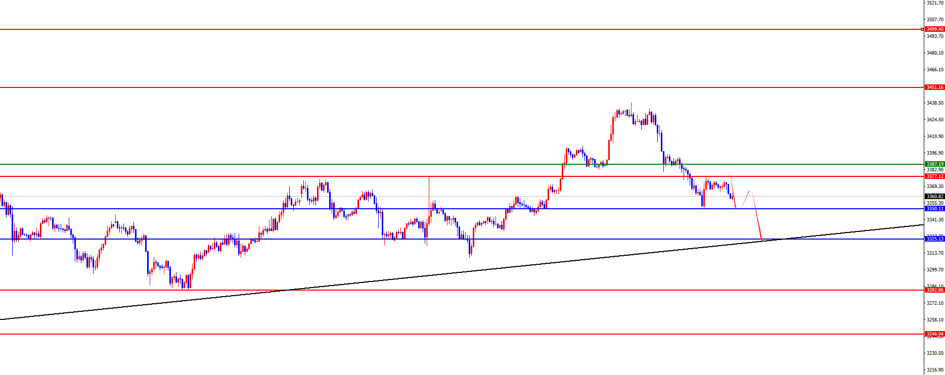 黄金3387下方空对待,短线关注早盘低点压制,目标3350破位关注3325