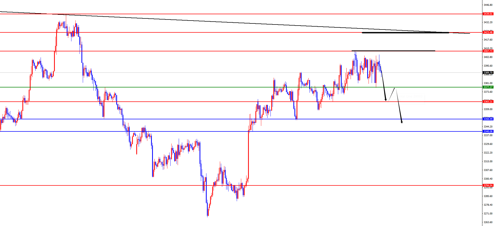 黄金3400区域空,防守10美金,目标3380-3365-3350
