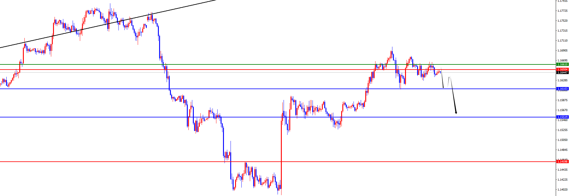 欧美1.1650-60区间空,防守50点,目标1.1610-1.1550
