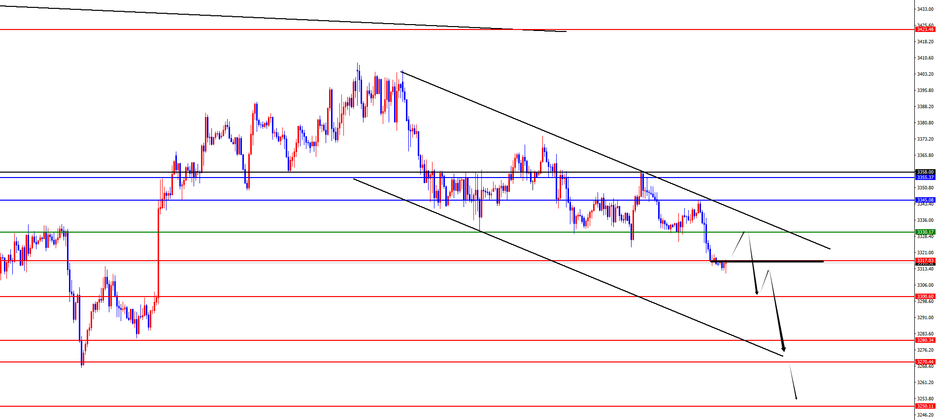 黄金3330-31区域空,防守10美金,目标3310-3290-3280-3250