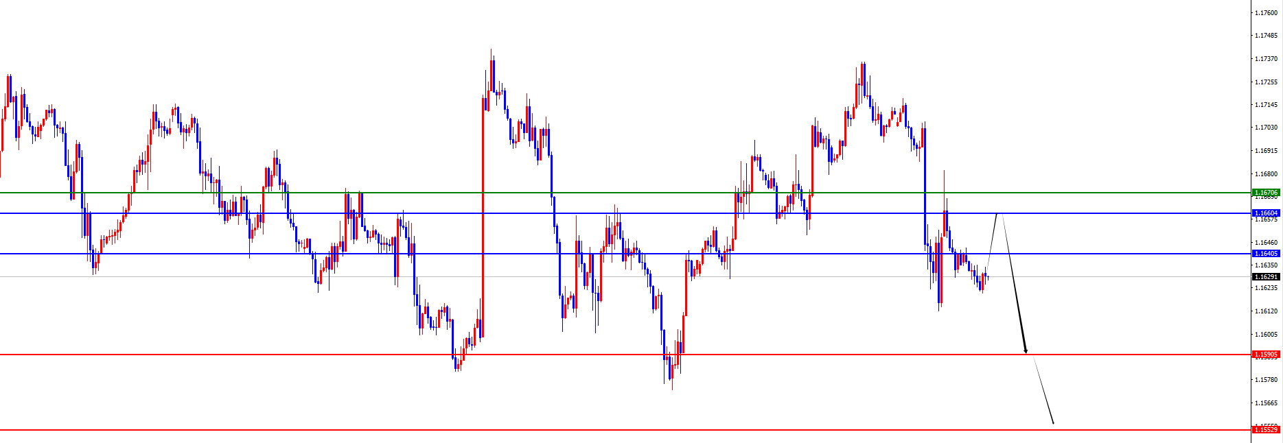 欧美1.1655-65区间空,防守40点,目标1.1590-1.1540