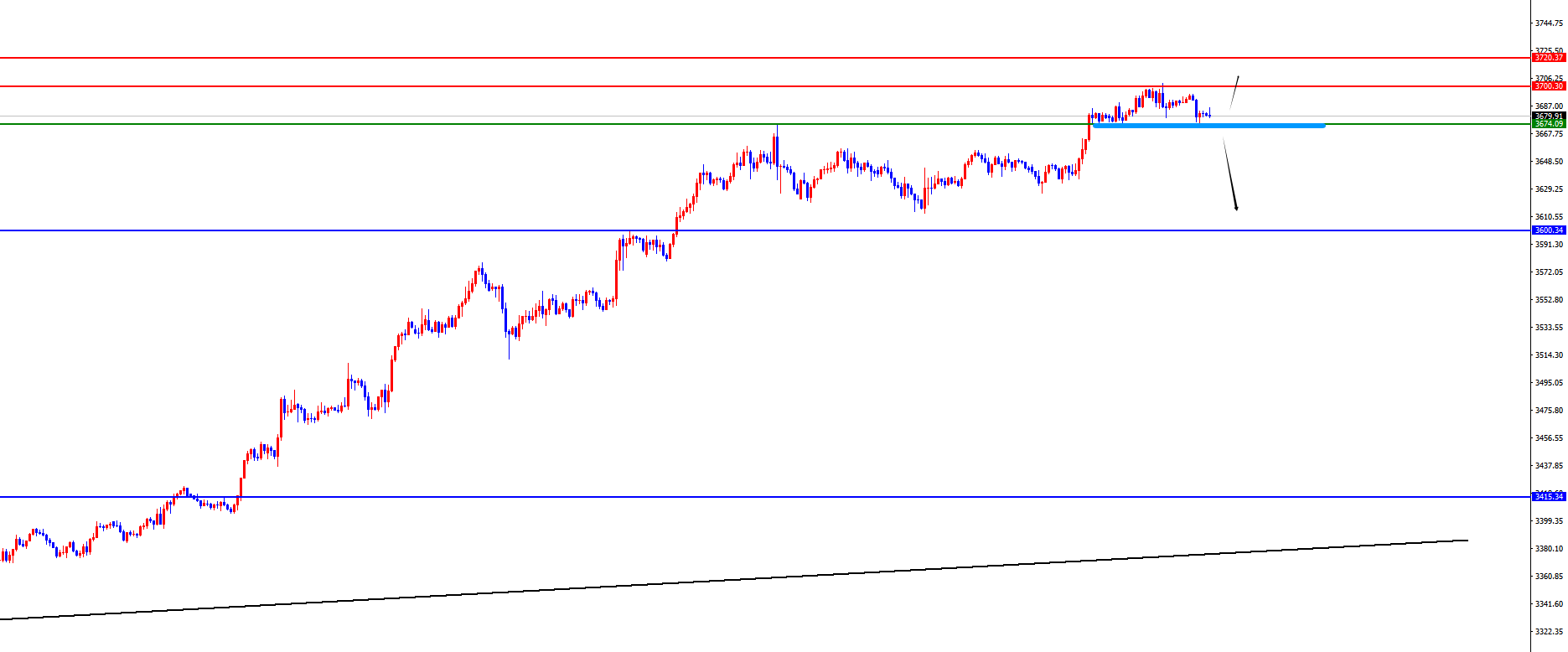 黄金关注3674分水岭,一旦下破则需要注意调整