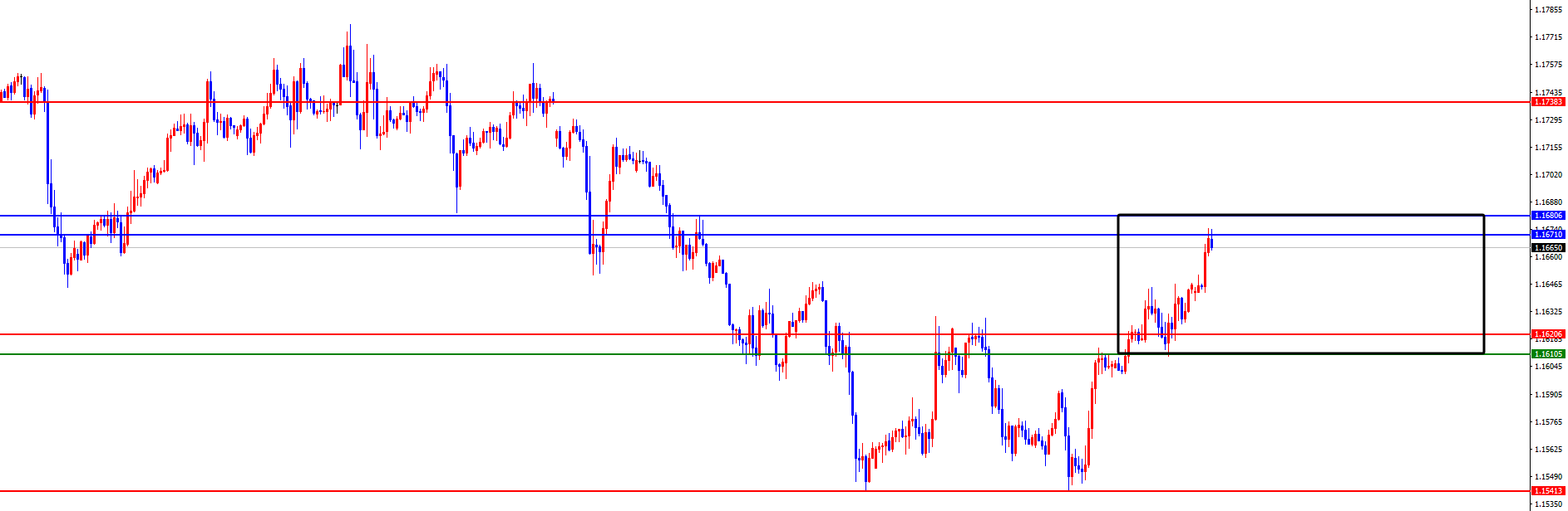从多周期分析,从月线级别来看,欧美受撑于1.1100位置,所以价格在此位置之上长线多头对待。从周线级别看价格受撑于1.1680区域的支撑,此位置是中线走势的多空分水岭,上周已经进行下破,关注本周最终收盘表现。从日线级别,日线上是我们强调波段走势的关键,目前日线阻力于1.1670位置,价格本周如期再度回踩,今日作为过度日对待。从四小时看,在上周五进行突破四小时阻力,周二价格如期再度突破站稳向上反弹,并且顺利测试到日线及周线阻力区间。目前四小时支撑于1.1610-20区间支撑,此位置在没有下破前短线还在多头,价格一旦下破则再转头看承压,目前注意市场节奏,操作上右侧交易方式对待。