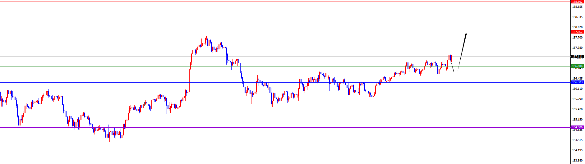 短线分水岭156.70-80区域,价格没有出现反转信号之前维持多