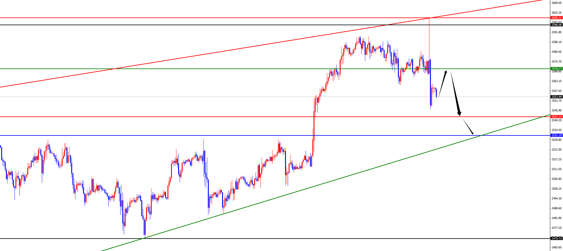【黄金】 黄金方面,周三黄金价格总体呈现冲高回落的状态,当日价格最高上涨至2599.92位置,最低下跌至2546.71位置,收盘于2559.11位置。回顾周三黄金市场表现,早盘期间价格震荡后下跌,但是欧盘后价格短线止步上行,表明黄金晚间有冲高回落的表现,如若按照昨日日内的方法2580-2581区间空则收割100多点,但是