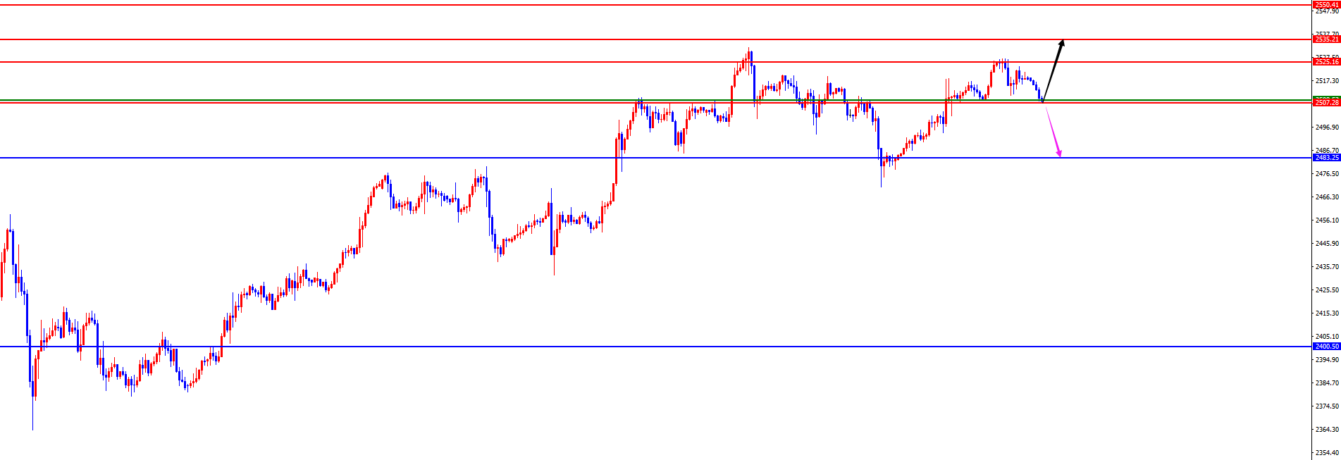 【黄金】 黄金方面,周四黄金价格总体呈现下跌的状态,当日价格最高上涨至2514.55位置,最低下跌至2470.71位置,收盘于2484.55位置。回顾周四黄金市场表现,早间开盘后价格短线震荡后承压,由于在周三市场中价格下破四小时支撑2510位置,前期强势上涨减弱,此状态考虑两个问题,第一是多头力量衰弱,第二是空头