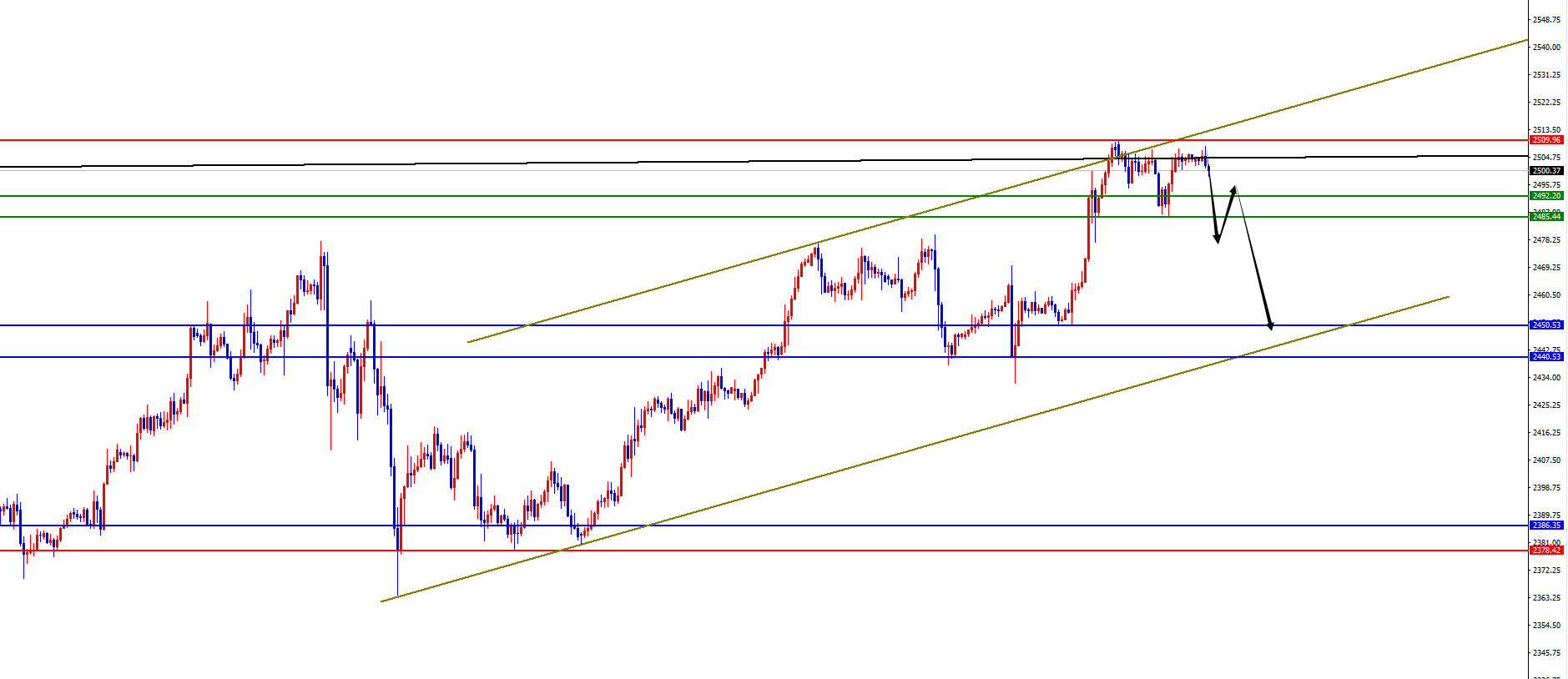 【黄金】 黄金方面,周三黄金价格总体呈现震荡的状态,当日价格最高上涨至2519.81位置,最低下跌至2493.78位置,收盘于2512.21位置。回顾周三黄金市场表现,早间开盘后价格短线向上修正,随后欧盘期间价格再度弱势承压,并且于美盘前四小时是以大阴收尾,同时进行刺破四小时支撑2510位置,所以整体上多头略有疲