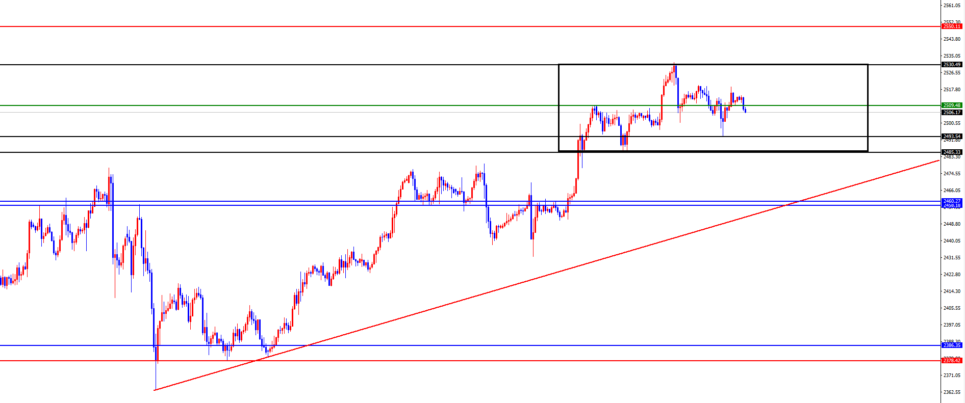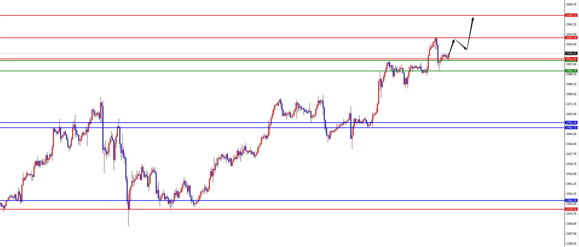 【黄金】 黄金方面,周二黄金价格总体呈现上涨的状态,当日价格最高上涨至2531.58位置,最低下跌至2497.21位置,收盘于2513.86位置。回顾周二黄金市场表现,早间开盘后价格短线震荡修正,从早盘回撤的低点看价格没有下破四小时支撑位置,随后欧盘期间价格依托四小时支撑再度强势上攻,并再创历史高位。晚间价格
