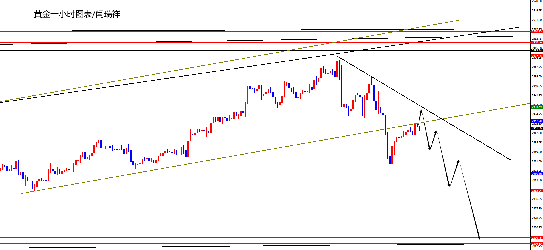 【黄金】 黄金方面,周三黄金价格总体呈现下跌的状态,当日价格最高上涨至2406.91位置,最低下跌至2378.9位置,收盘于2382.87位置。回顾周三黄金市场表现,早间开盘后价格如期先进行向上运行,欧盘期间价格延续反弹,随后美盘后价格正如笔者所言测试日线阻力区域后承压,我们昨日强调于2406-2407区间布局空,回