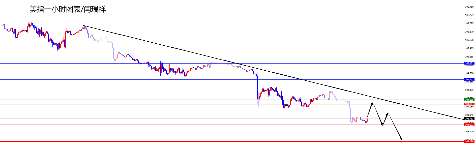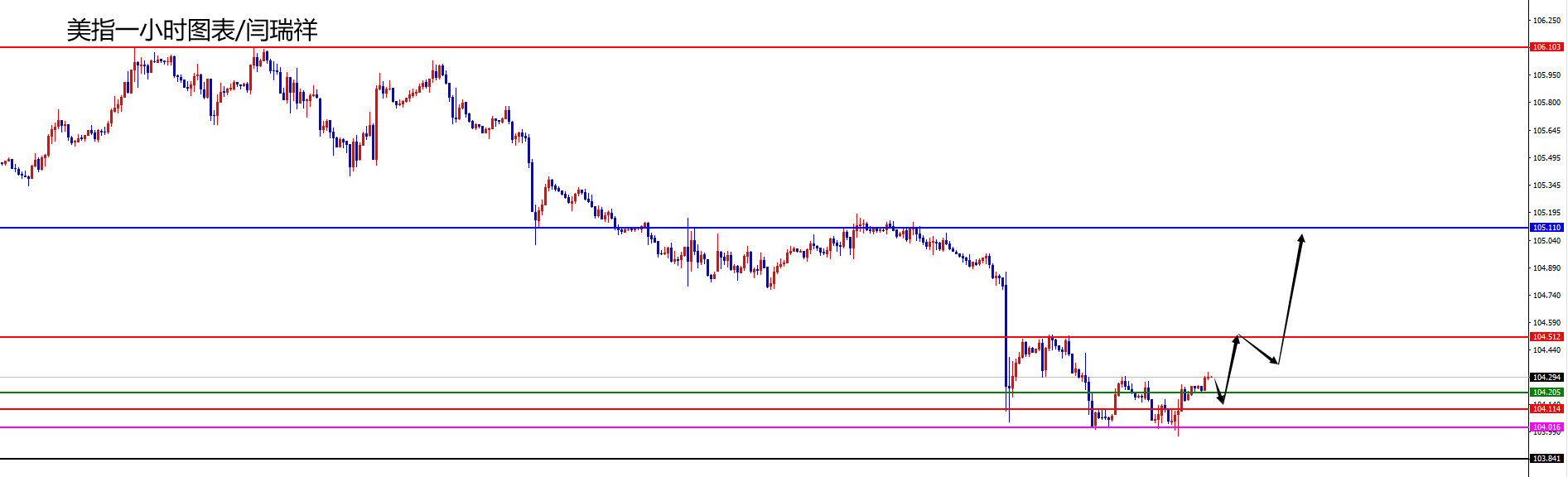 【美元指数】 美元指数方面,周三美元指数价格总体呈现下跌的状态。当日价格最高上涨至104.272位置,最低于103.619位置,收盘于103.707位置。回顾周三美指价格表现,早间开盘后价格短线震荡为主,随后欧盘价格快速大幅承压下跌,价格跌破月线级别关键支撑位置,随后晚间价格再度震荡收盘,日线上最终大阴收尾。