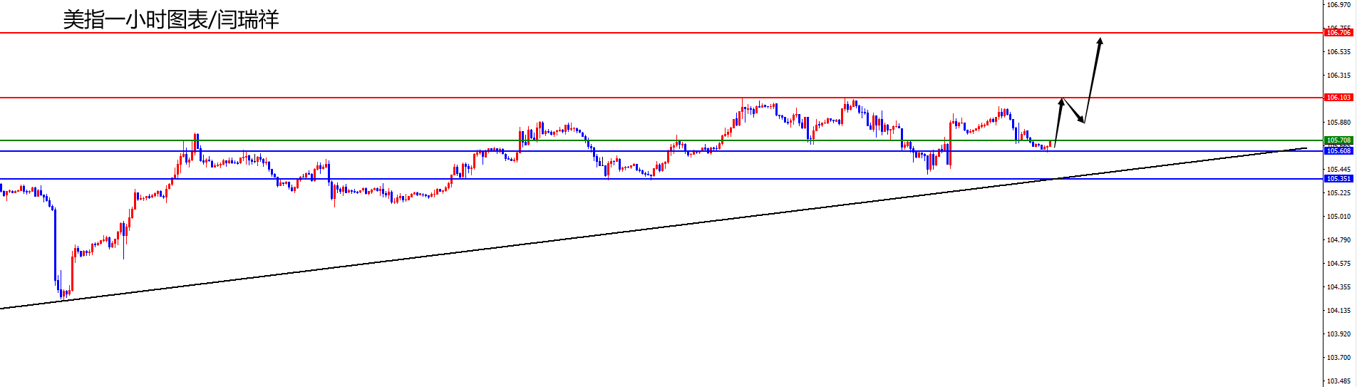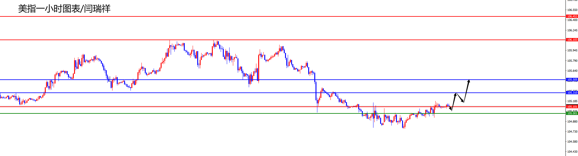 【美元指数】 美元指数方面,周二美元指数价格总体呈现上涨的状态。当日价格最高上涨至105.186位置,最低于104.928位置,收盘于105.105位置。回顾周二美指价格表现,早间开盘后价格短线震荡为主,随着日内震荡价格迟迟没有下跌,随后正如笔者所言价格再度向上拉升,最终日线上价格大阳收尾,目前看美指短线还有