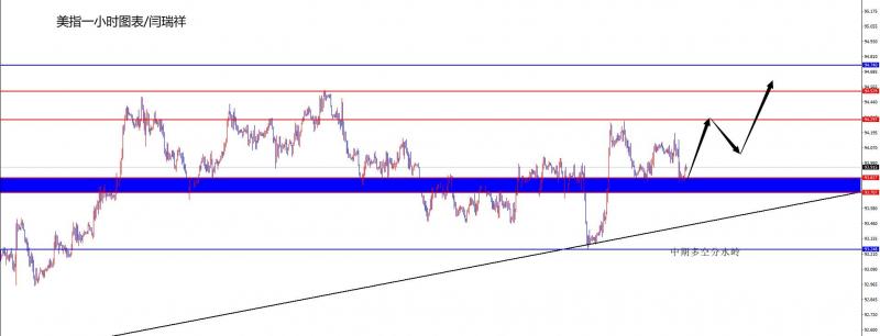 【美元指数】 美元指数方面,周一美元指数价格总体呈现上涨的状态。当日价格最高上涨至96.526位置,最低于95.972位置,收盘于96.482位置。回顾周一美元指数表现,日内开盘后价格一直维持震荡格局,晚间价格再度飙升,并且突破关键阻力位置,从目前总体看美指价格依旧强势多头,操作上我们逢低布局多,下方我们暂时重点