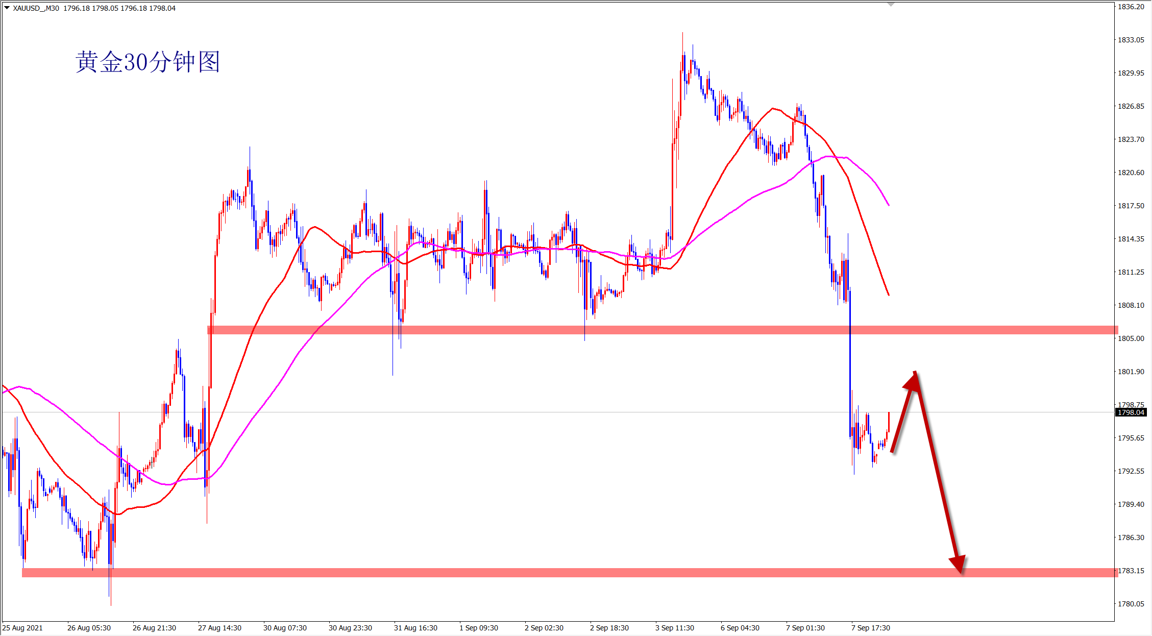 【黄金】 黄金方面,昨日黄金价格总体呈现下跌的走势,当日价格最高上涨至1806.81位置,最低于1790.64位置,收盘于1793.5位置。回顾昨日黄金日内总体走势表现,日内价格短线震荡运行,多头没有持续延续,美盘开启后价格短线上冲,但是并没有破位周二高点位置,随后再次承压下跌,日线再次大阴收尾。多头没有延续则依旧属