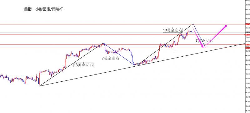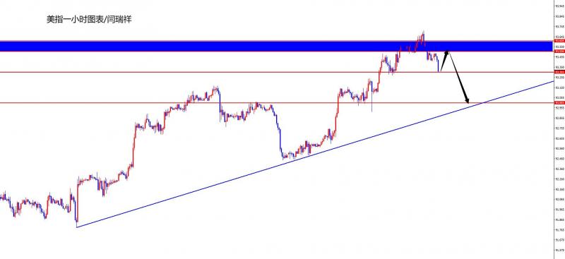【美元指数】 美元指数方面,周四美元指数总体呈现上涨的走势,当日价格最低于93.103位置,最高上涨至93.561位置,收盘于93.534位置。回顾昨日美指价格表现,早间开盘后价格开启上扬,多头如期破位前期两次冲高高点位置。我们本周也会着重给大家讲解。日线级别昨日大阳收尾,同时目前也是价格首次突破,针对突破后有两种