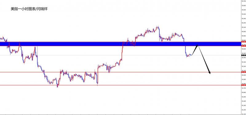 【美元指数】 美元指数方面,上周五美元指数总体如期呈现下跌的走势,当日价格最高于92.992位置,最低于92.445位置,收盘于92.49位置。回顾上周美元指数价格表现,周三价格冲高回落,日线再次承压前期关键阻力位置,随后开始下跌,我们也是给大家精准方向。周线级别再次大阴收尾,目前我们暂时按照箱体震荡偏弱的状态对