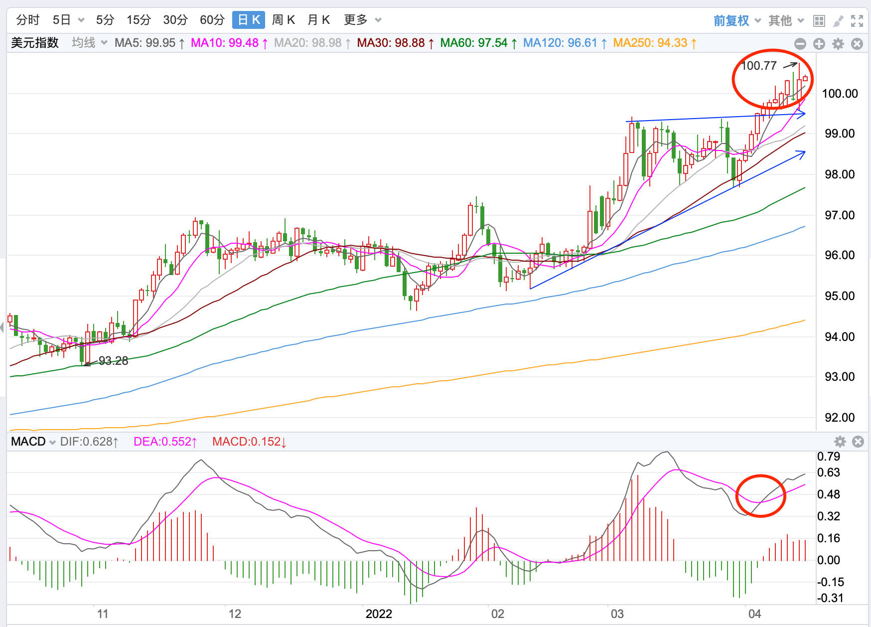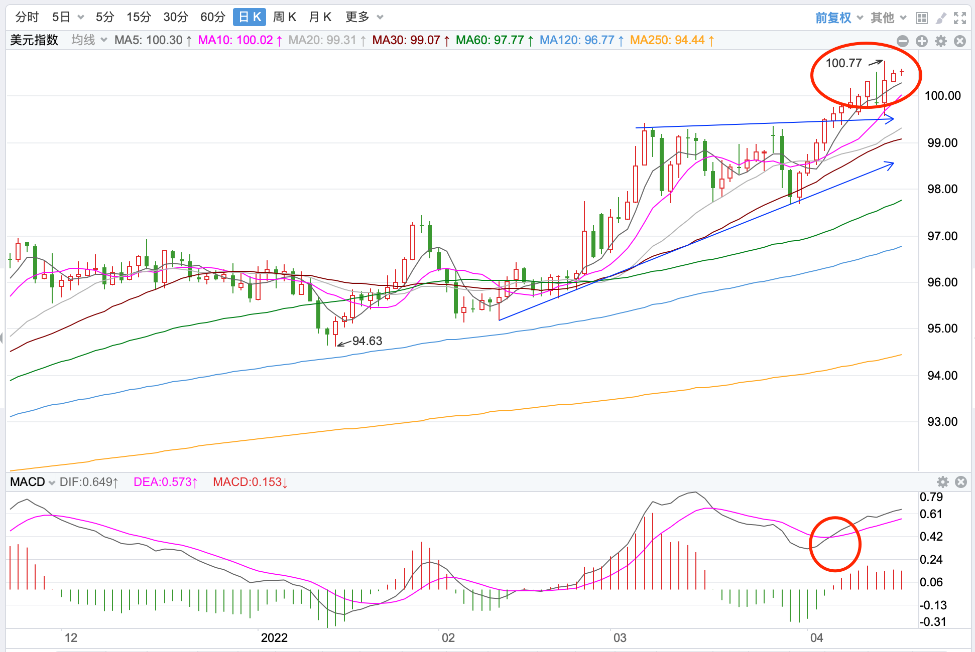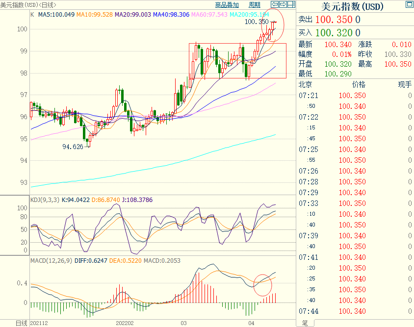 美元指数前期一路上行创出102.99的新高,后一路震荡回落。当前再次受支撑反弹,整体价格在MA200下方运行,短线呈震荡回落走势。而前期高点对应的价格93.85变成当前行情的强阻力位,也是后市的多空分水岭,如果此压力有效,后市会继续展开回落。日内阻力在93.85、94.20,支撑位:93.40、93.10。