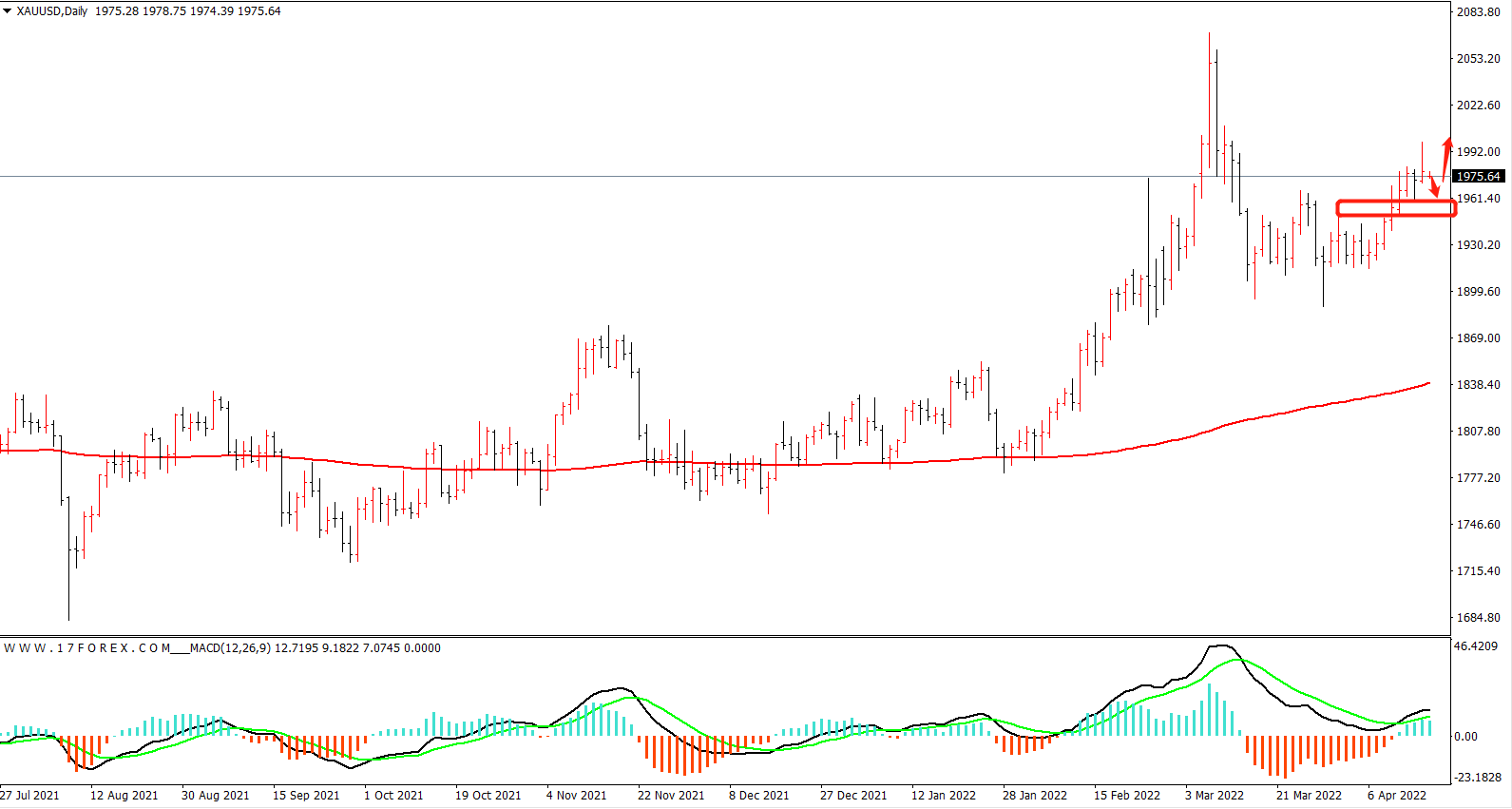 现货黄金价格从1445的前期低点一路展开上行,创出之前2075的新高后,单边快速下跌到50%回撤位1863附近,当前整体价格在MA200上方运行,MACD指标企稳在零轴上方,目前形成震荡反弹走势。而前期高点对应的价格1891成为当前的强支撑位,也是短线的多空分界线,价格只要不突破此支撑,还有反弹的空间;反之,如果此支撑被有效突破,黄金会展开回落走势。
