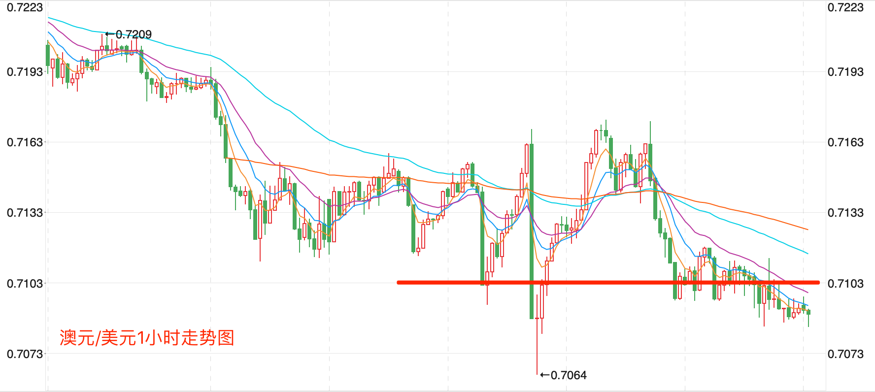 前期自2020年3月底企稳0.5673低点开启上涨走势;盘中突破了MA200均线的关键阻力而上行走高;2021年2月触及0.80072点高位后开始震荡走低,8月底企稳在0.7114点展开反弹走势再度终结,目前重回8月低点调整走势。当前日内行情触底反弹的趋势。