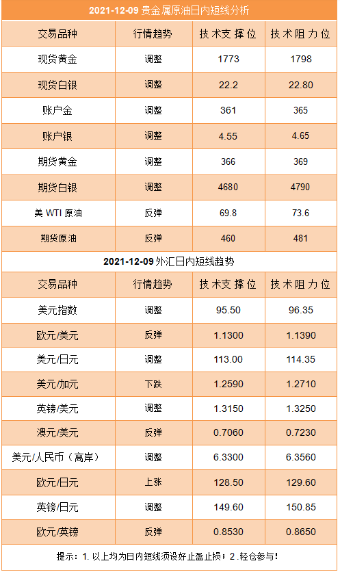 美元 对美元指数走势构成影响的因素有以下几个方面,首先,美国10月JOLTs职位空缺为1103.3万人,相比预期的1046.9万人和前值1043.8万人有所下降;美国截止12月3日当周MBA抵押贷款申请活动指数为616.4,高于前值604.2。以上数据均利好美元指数的反弹,对金银和非美构成压力。其次,美联储周三(12月8日)逆回购工具使用规模为1.484万亿美元,这是近几个月逆回购工具使用数量较大的一次之一;美联储在即将进一步收紧宽松货币的操作下,加紧向市场注入更多的流动性。第三,机构目前对美联储收紧宽松呈现一边倒的首肯模式,大部分机构和媒体预测12月中旬美联储将加码收紧宽松。美国银行:建议沽空美国两年期国债“勿要与美联储对抗”。知名经济学家吉姆·奥尼尔表示, 随着主要经济体通胀率持续处于异常高的水平,央行实施宽松政策的理由已经不复存在。第四,美联储主席鲍威尔此前(上周)表示,不再使用“暂时性”一词描述通胀。英国皇家国际事务研究所高级顾问在接受媒体采访时认为,美联储措辞转变为时已晚。综合以上分析,美国经济数据利好美元走势,但是市场在美联储收紧宽松会议之前抛售美元导致下跌。因此金砖汇通近期判断美元顶部调整走势正确,美元近期的下跌将延续。
