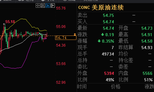 原油从技术面上分析,日线上显示,油价周初收阳延续反弹走势,不过逼近布林带中轨压力后,短期涨势受限,当前K线持于压力下方,后市预计将继续测试阻力;短线上看,油价短期仍然处于近期震荡反弹走势中,4小时布林带三轨向上发展,均线多头排列;综上所述,黄金短线趋势仍然倾向震荡反弹,因此操作上先回撤多为主。综合来看,今日晚间操作思路上陈文龙个人建议回调做多为主,反弹做空为辅,上方短期重点关注55.6-55.8一线阻力,下方短期重点关注53.8-54.0一线支撑。