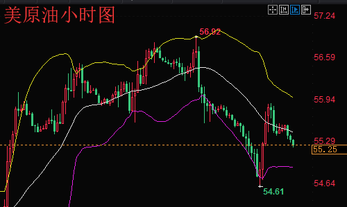 原油昨日走出了一波过山车行情,亚盘开盘就直接从55.8附近起跌开始回落,欧盘也是持续走低,晚间最低给到了54.6附近可以说是阴跌行情持续走低行情,随后美盘开盘受56.6支撑企稳反弹我们在55.7附近果断做多,后半夜也是持续走高最高反弹56.8附近我们多单已经成功获利离场,价格来看将近把日内跌幅全部收回,日线来看原油昨日收出下探回升小阴线,说明下方支撑有机构买入原油价格,4小时来看原油给出新低之后目前再次企稳布林带下轨,但受中轨短期压制,1小时来看原油目前价格企稳布林带中轨上方,但价格昨晚给到布林带上轨之后短期承压,重点关注晚间EIA数据指引方向。综合来看,今日短线操作思路上陈文龙个人建议以回调做多为主,反弹高空为辅,上方短期重点关注55.9-56.4一线阻力,下方短期重点关注54.6-54.1一线支撑。