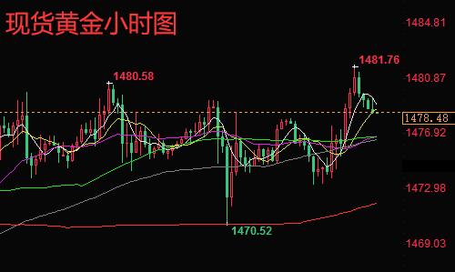 1、黄金上方反弹不破1482-1484一线做空,止损4美金,目标看1475-1473一线;