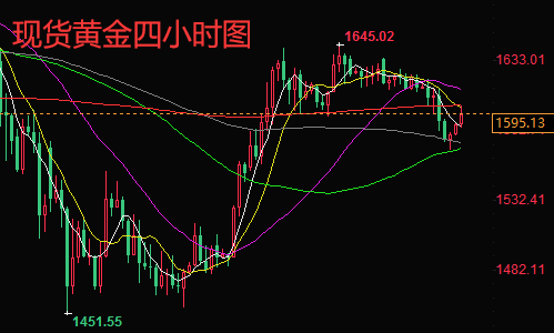 1、黄金上方反弹不破1605-1607一线做空,止损4美金,目标看1590-1588一线;