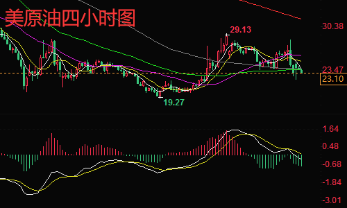 由于受消息面的打压,快速的探高回测,4小时有下挫线,看上去短线空头更强一些,但要结合周K线的结构来看。周线并未完全回吐上涨启明线的形态组合,也就是暂时守住了低点19.20上方震荡。目前短线的回测可当作是二次下探确认底部,所以短线虽然结构偏空,但空间看不了太升,仍看好周线级别的盘底回升。故短线操作看空不追空,同样等待下探止跌启稳后以低多为主。低多是为了将短线多随时调整成中线布局。亚盘在22.50附近轻微止跌启稳,欧盘开盘后只要不下破亚盘低点,下行空间难延续,可能会在此位之上走收复回升。综合来看,今日晚间短线操作思路上陈文龙个人建议以回调做多为主,反弹高空为辅,上方短期重点关注25.0-25.5一线阻力,下方短期重点关注21.7-21.2一线支撑。